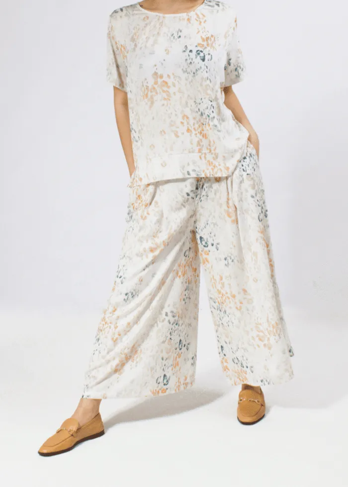 Falda pantalón estampada mujer Parole Italy manchas. Los pantalones anchos te darán ese look relajado pero seguirás estando a la moda y con estilo. En Lopezientos podrás encontrar variedad de este tipo de pantalón que es tendencia en esta temporada. En nuestra nueva colección tenemos pantalones anchos de cuadros y de estilo pijama que te darán esa comodidad que estás buscando.