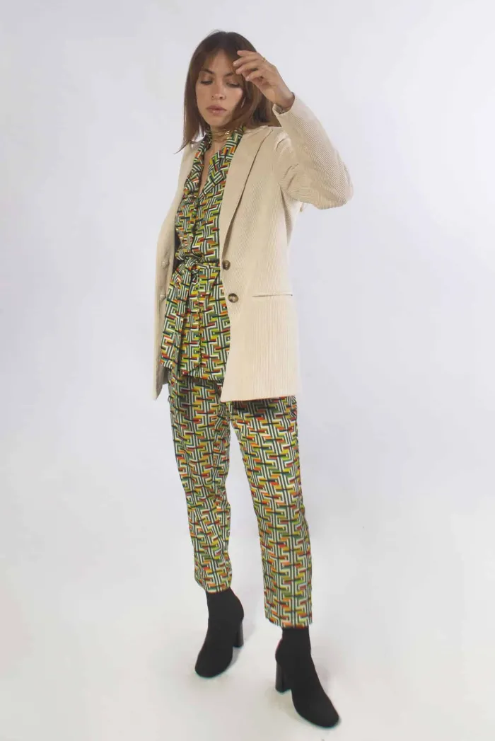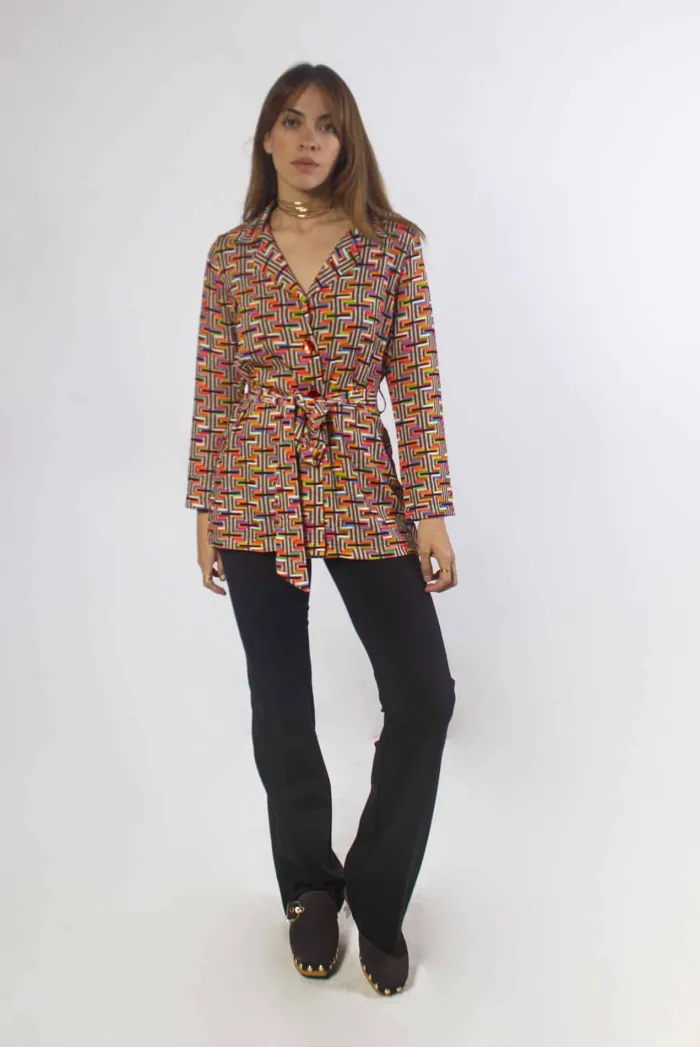 Americana fluida de invierno estampado Kendal. Con cinturón.