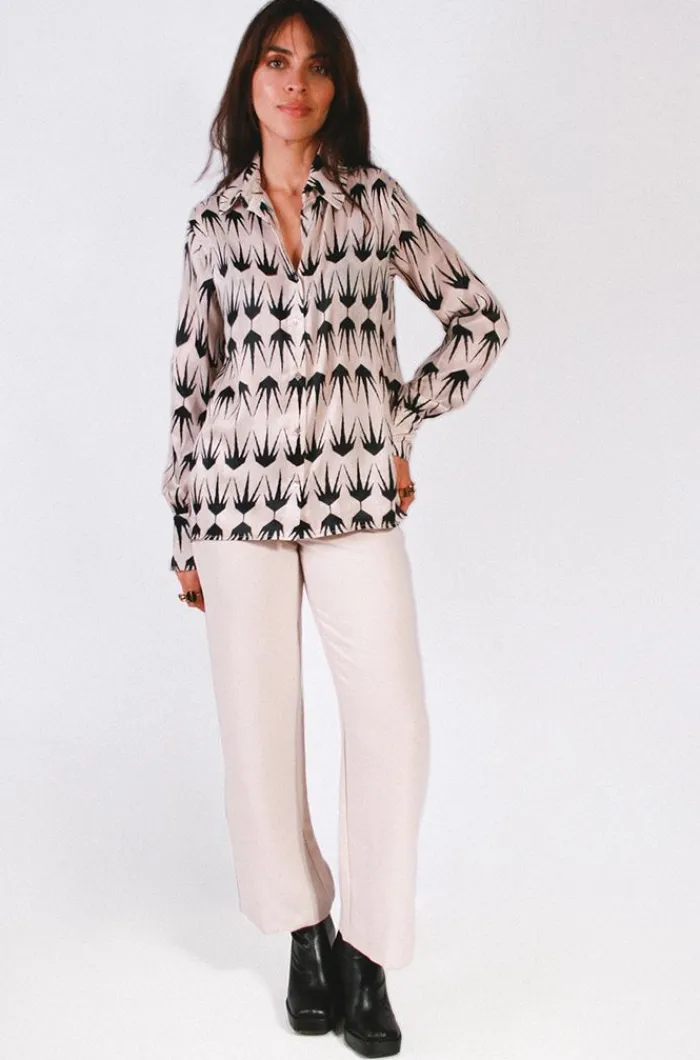 Camisa mujer básica estampada Destello ligeramente entallada.
