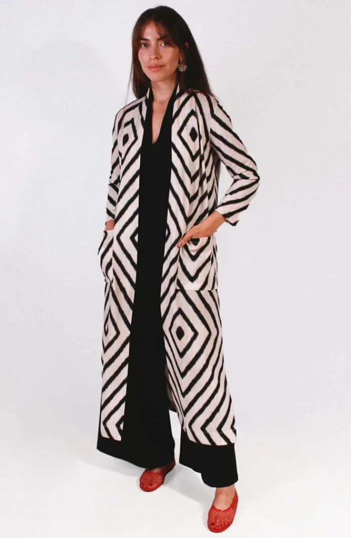 Chaqueta mujer larga estampada Rombos.