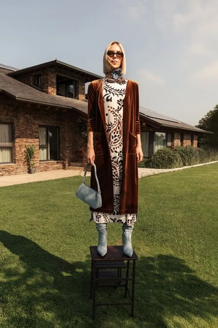 Chaqueta mujer larga con aberturas laterales terciopelo Parole Italy.