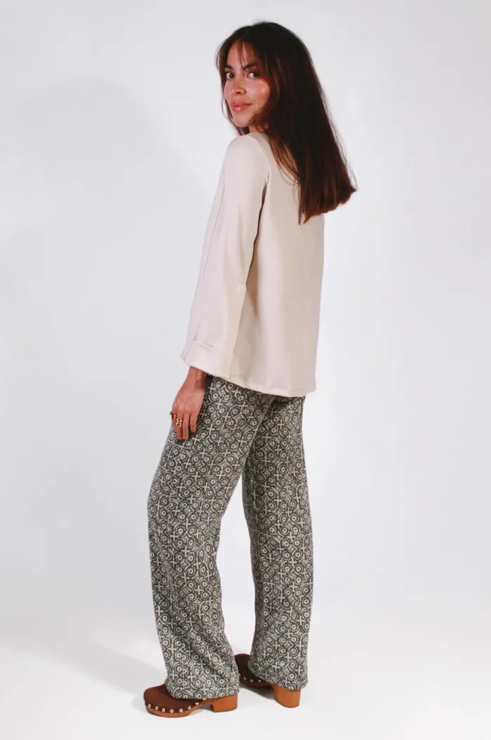 Pantalón mujer recto de pana estampado Batik.