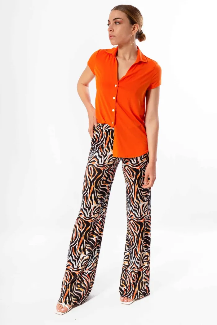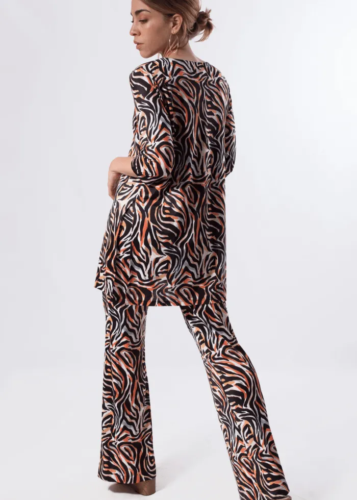 Pantalón zebra multicolor mujer, de la marca Parole Italy. Los pantalones cómodos no pueden faltar en el armario de una mujer. Los pantalones fluidos y de vestir para mujer con estampados se convierten en la opción más elegante y fácil de escoger para ir a la oficina o a una reunión importante de trabajo.