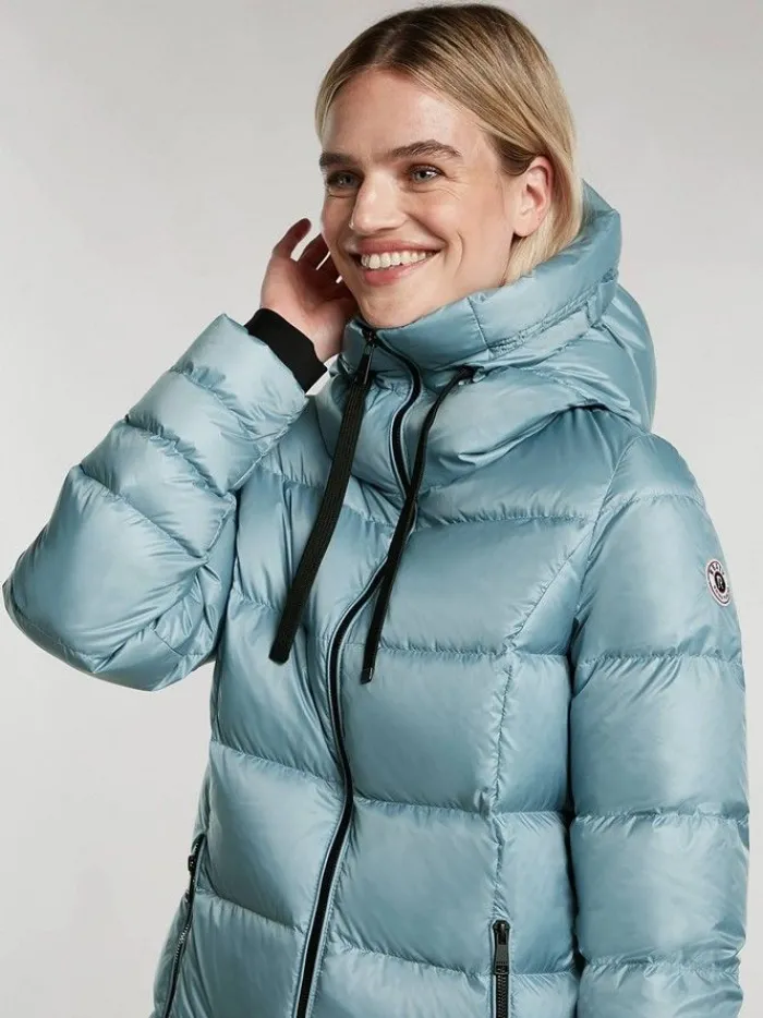 Plumas mujer largo con cuello chimenea se caracteriza por su capucha de gran tamaño y sus accesorios negros. Relleno de ligero plumón RDS para mantenerte abrigado cuando baja la temperatura, aunque sigue siendo ligero para la máxima comodidad de uso.