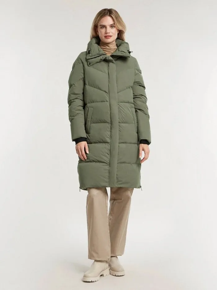 Plumas mujer largo está confeccionado en un tejido ligero mate con un acabado de elasticidad mecánica y relleno de plumón ligero RDS para una comodidad óptima. Su silueta relajada y cómoda se distingue por un cuello alto y confortable.