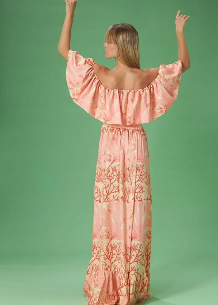 Vestido coral largo estampado corales. Los vestidos son un prenda de ropa práctica y versátil, los puedes llevar tanto en invierno, con medias para cubrirte del frío, como en verano para lucir tu bronceado. Los vestidos te sacan de aprietos, con una sola prenda puedes salir de casa con estilo y un look único. Son ideales para eventos como cócteles, comidas, para el día a día, para ir a la playa y incluso para bodas.