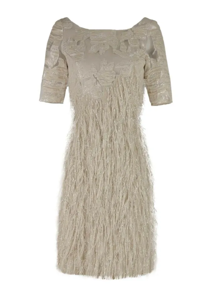Vestido corto plumas mujer con escote barco. Los vestidos cortos son un prenda de ropa práctica y versátil, los puedes llevar tanto en invierno, con medias para cubrirte del frío, como en verano para lucir tu bronceado. Los vestidos te sacan de aprietos, con una sola prenda puedes salir de casa con estilo y un look único. Son ideales para eventos como cócteles, comidas, para el día a día, para ir a la playa y incluso para bodas.