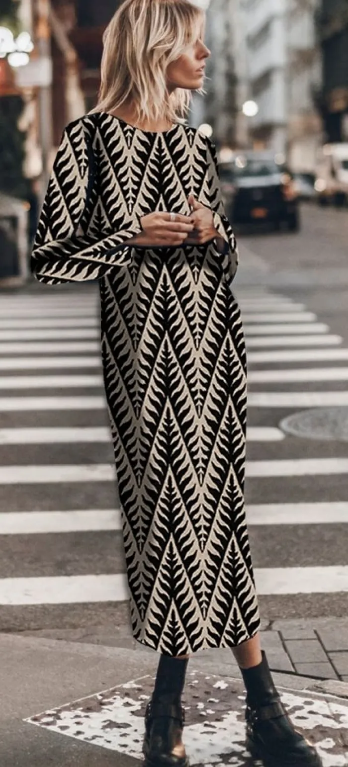 Vestido mujer midi cuello barco estampado Rama Parole Italy.