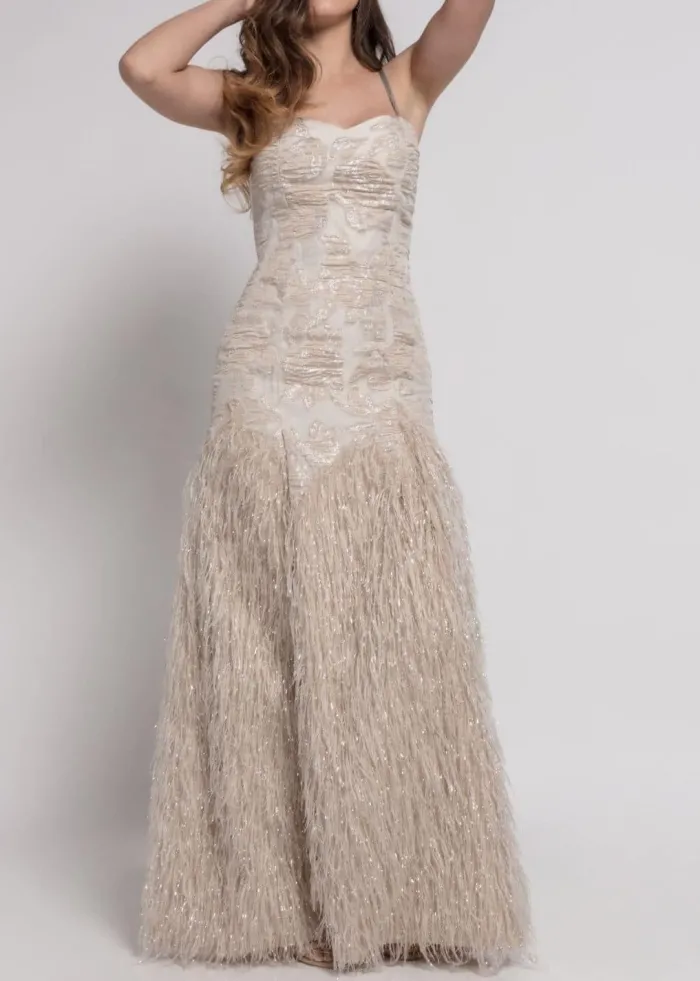 Vestidos de fiesta con plumas mujer largo escote corazón. Los vestidos largos son un prenda de ropa práctica y versátil, los puedes llevar tanto en invierno, con medias para cubrirte del frío, como en verano para lucir tu bronceado. Los vestidos te sacan de aprietos, con una sola prenda puedes salir de casa con estilo y un look único. Son ideales para eventos como cócteles, comidas, para el día a día, para ir a la playa y incluso para bodas.
